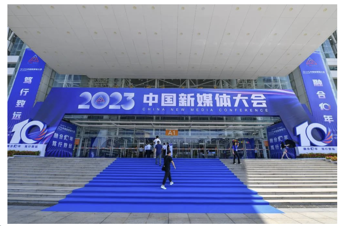 这是2023年7月12日拍摄的2023中国新媒体大会中国新媒体技术展外景。新华社记者 陈泽国 摄
