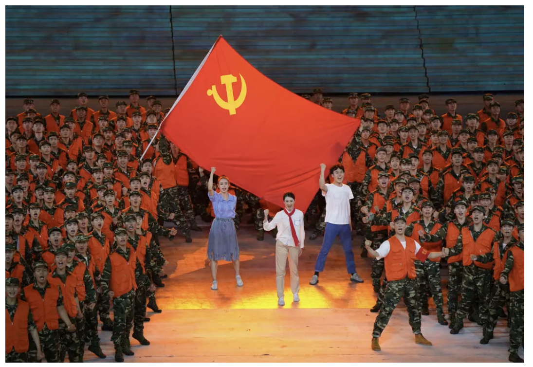 2021年6月28日晚,庆祝中国共产党成立100周年文艺演出《伟大征程》在北京国家体育场盛大举行。这是情景舞蹈《党旗在我心中》。