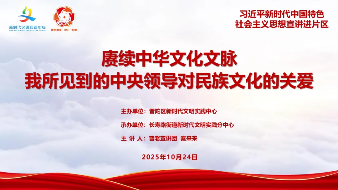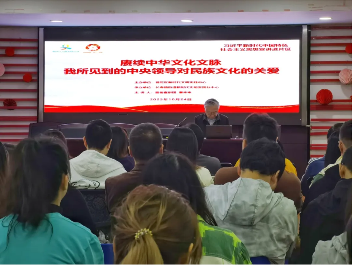 为深入学习贯彻习近平新时代中国特色社会主义思想,10月24日,一场意义深远的新时代文明实践暨“赓续中华文化文脉——我所见到的中央领导对民族文化的关爱”宣讲活动在长寿路街道东新片区温情启幕。