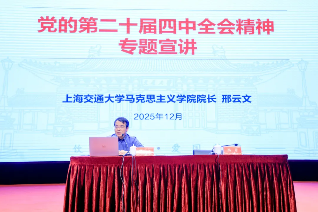 专题宣讲上海交通大学马克思主义学院院长邢云文教授以二十届四中全会的重要地位为切入点,围绕“十五五”时期经济社会发展的指导方针、主要目标、战略任务、重大举措等方面,对党的二十届四中全会精神作了全面、系统、深刻的解读,内容翔实、脉络清晰,既通过理论阐释与政策解读筑牢思想根基,又结合鲜活案例对具体落实思路进行方向性指引,为参会党员干部准确把握全会精髓要义提供了重要的理论和实践指导。
