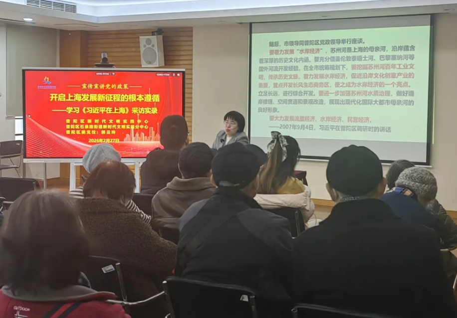 2026年是“十五五”规划的开局之年,为深入学习贯彻习近平新时代中国特色社会主义思想,筑牢基层党员群众思想根基,2月27日,普陀区新时代文明实践中心、普陀区石泉路街道新时代文明实践分中心联合举办专题党课,邀请普陀区委党校副教授郝云玲以“开启上海发展新征程的根本遵循——学习《习近平在上海》采访实录”为主题,为街道党员群众、社区工作者带来一场深刻的思想洗礼,为“十五五”开局凝聚思想共识、汇聚奋进力量。