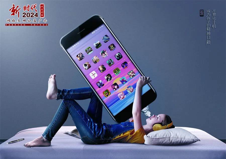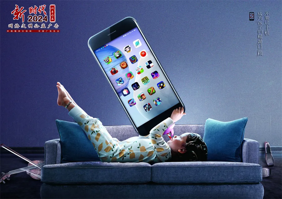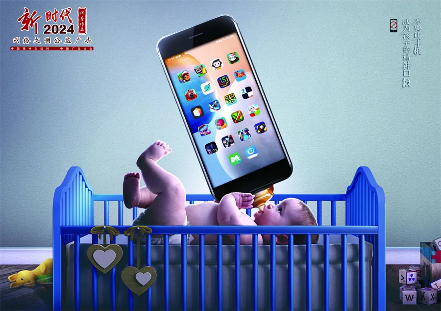 弘扬主流价值、传播文明理念、传承中华优秀传统文化、培育时代新风。2024年“新时代网络文明公益广告”征集展示活动优秀作品近日公布,共有50件作品入选。今天给大家分享的是优秀作品《不要让手机成为孩子的精神口粮》。
