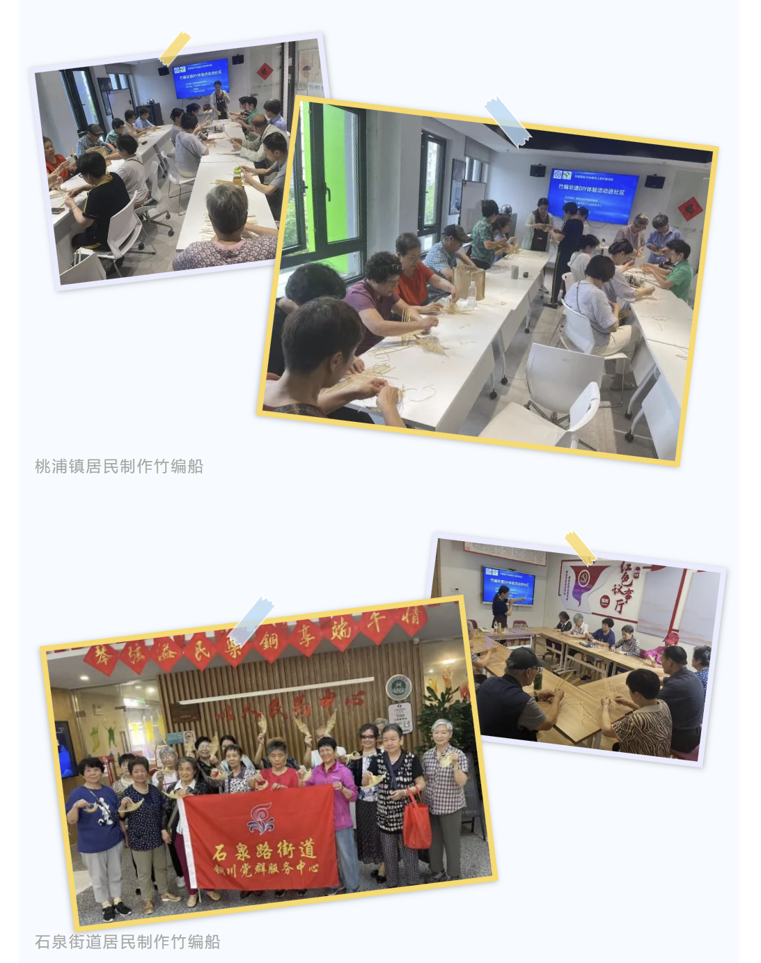 活动现场,社区居民们在上海艺助行公益促进中心的非遗竹编老师的详细讲解下,对竹编工艺的历史、制作流程以及主要特点有了一定了解后,便开始亲自动手。跟随老师的指导,居民们利用竹子和彩绳,感受传统技艺的精妙之处,制作出一个个精美的竹编船。