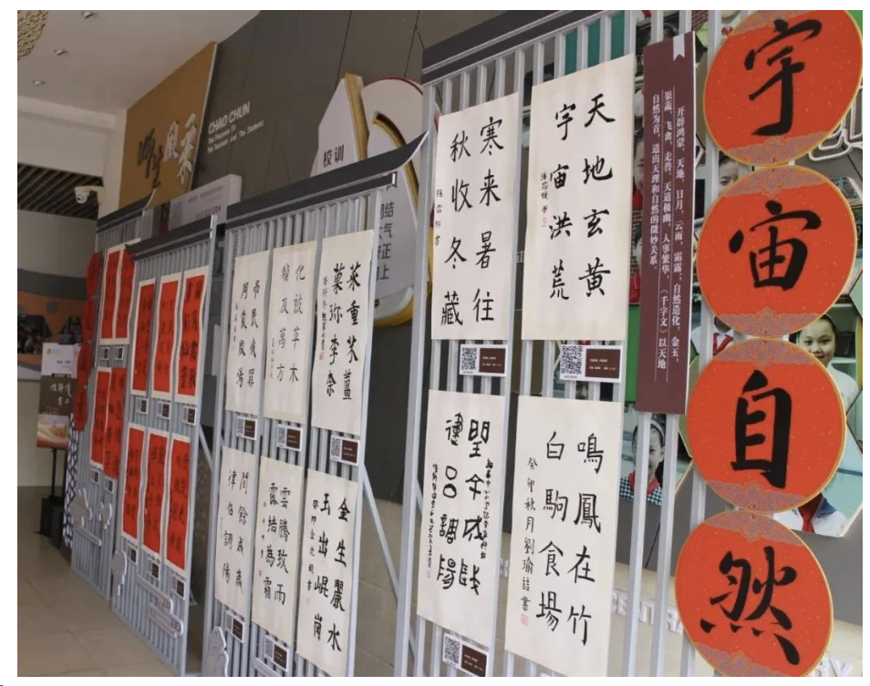 为了使主题更加突出、更具教育意义,朝春中心小学设计了三大主题——“宇宙自然”“华夏盛景”“修身明德”,分别由三、四、五年级学生书写。