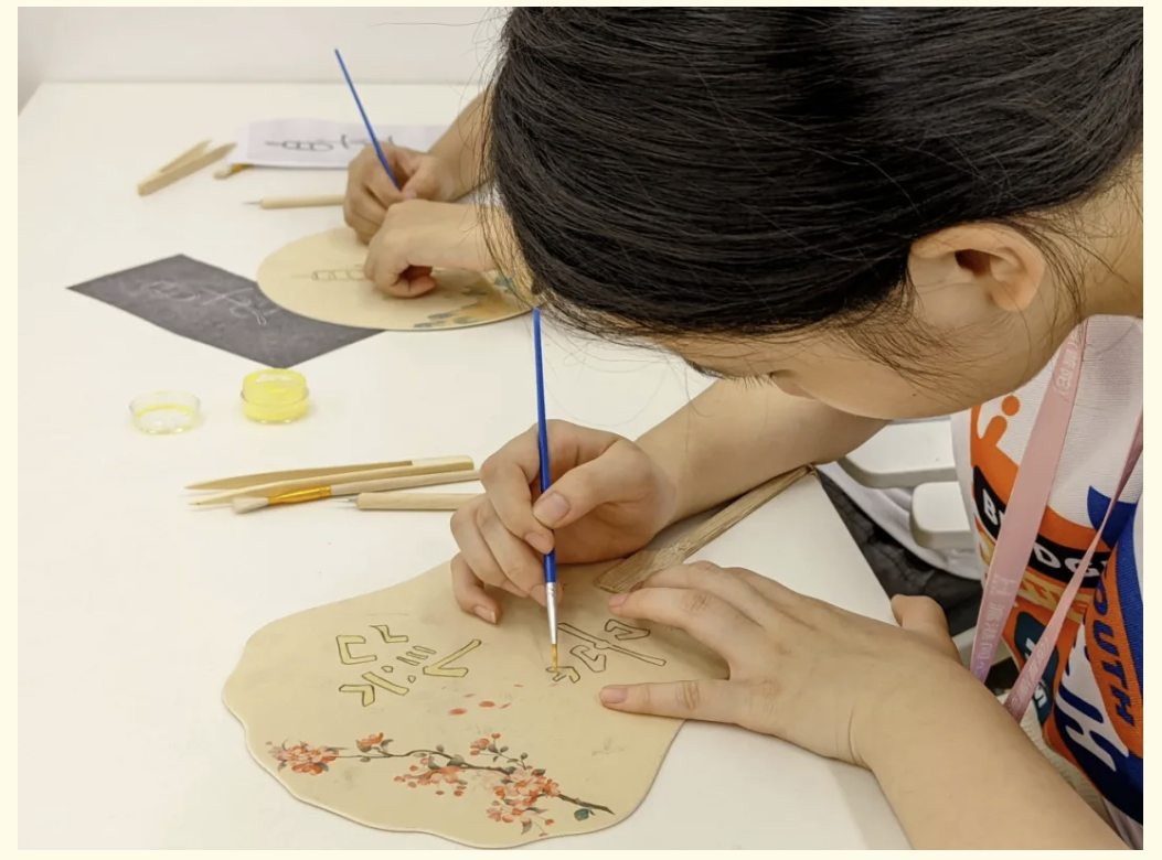 学生们体验非遗烧箔画制作