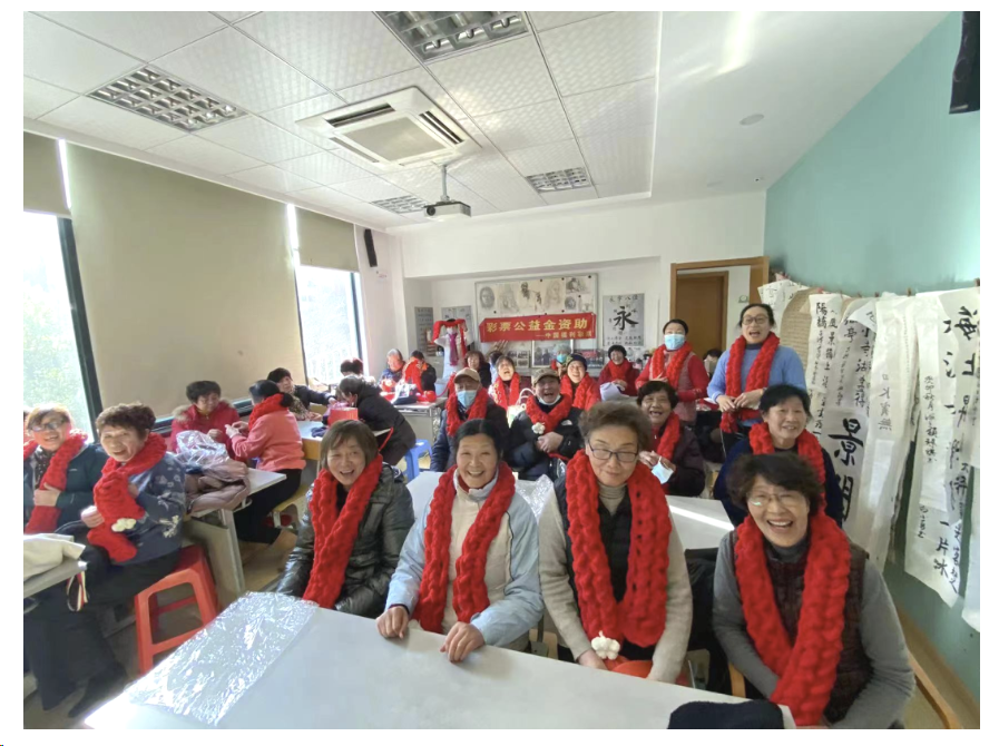 看!老人们展示自己精心编织的围巾。一条条充满爱意和关怀的围巾,不仅为寒冷的冬日带来了温暖,更成为了大家心中的温馨记忆。