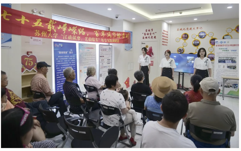 日前,宜川路街道交西片区协同苏州大学艺术教育中心“江南筑梦,艺韵留芳”暑期社会实践调研团开展文艺演出活动。