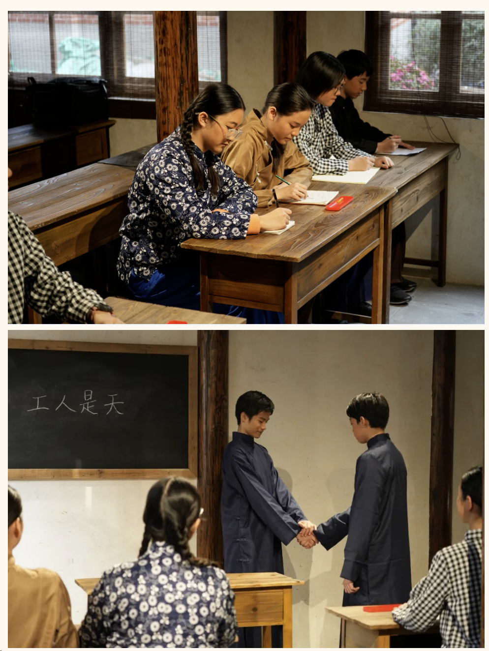 小演员们身着民国服装,身临其境的表演让观众们仿佛穿越百年,一边观演一边在《望道足迹》写下关键历史信息,来看看他们的感悟吧!