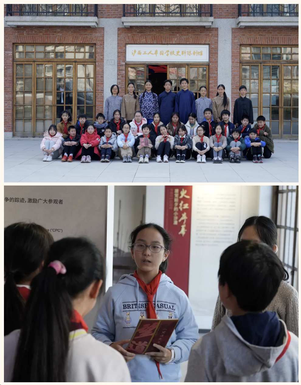近日,沪西工人半日学校史料陈列馆迎来了上海市江宁学校七年级的师生,师生们依据真实历史背景,利用场馆资源优势,通过馆内文献档案、影音资料、多媒体等资源,进行沉浸式戏剧表演和观赏,叩响信仰之门,探寻真理之源,传承红色基因,厚植理想信念。