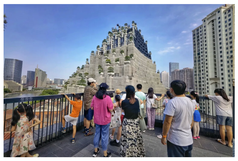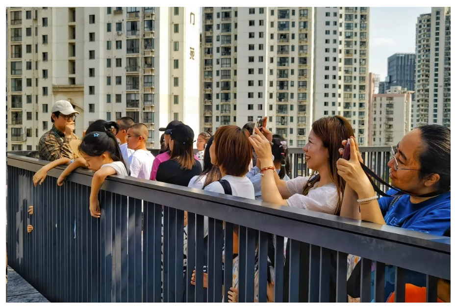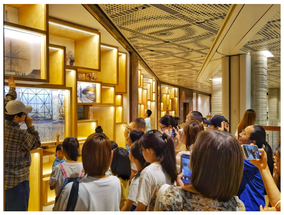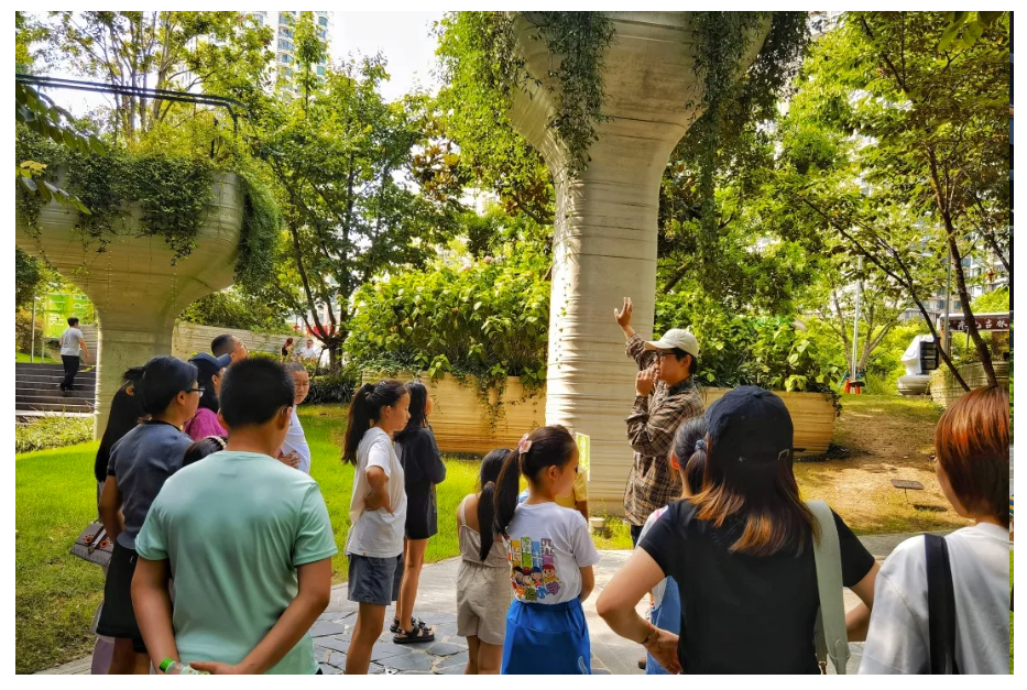 少先队员携手家长,在千树工作人员的带领下游览“千树”建筑和苏州河水岸美景,了解长寿湾的历史变迁,在顶楼饱览福新面粉厂旧址、阜丰面粉厂旧址等在内的工业遗存,对半马苏河的文化内涵有了初步了解。