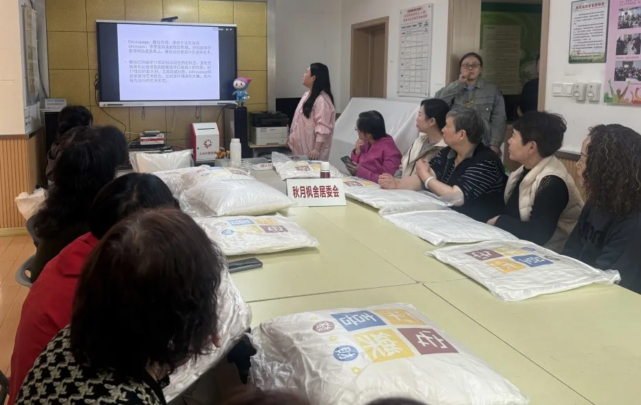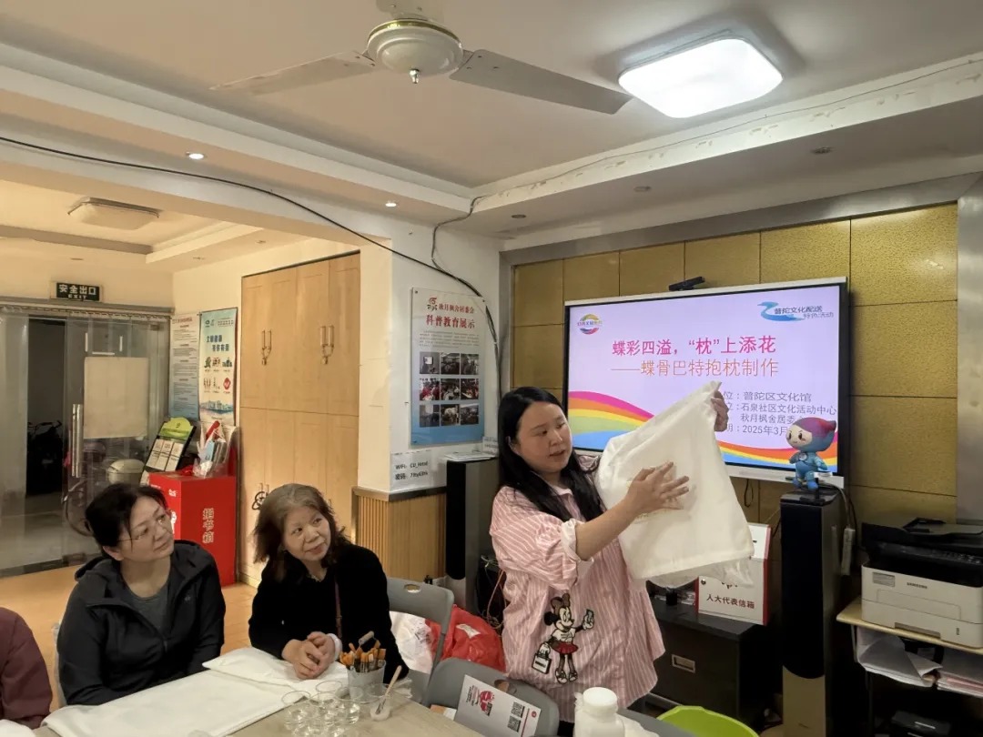 春暖花开,万物焕发生机。为丰富社区社会化退休人员的文化生活,增进邻里情谊,提升居民对社区的归属感,3月26日,石泉路街道秋月枫舍居民区新时代文明实践站举办了一场别开生面的蝶骨巴特抱枕制作活动,为社区生活增添了一抹亮丽的色彩。
