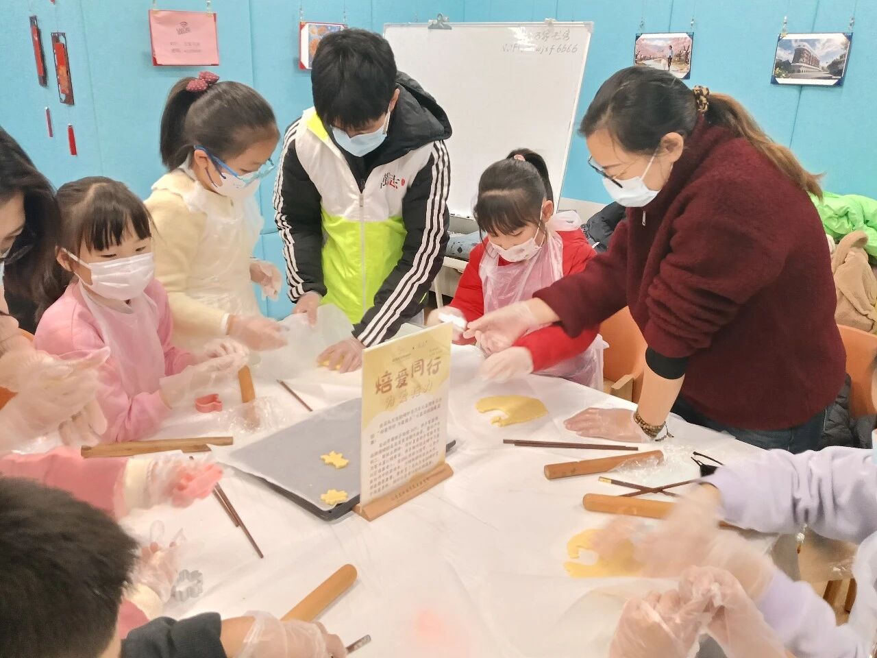 活动现场,家长与孩子们仔细聆听老师讲解的制作步骤,亲子默契配合,揉捏、擀压、烤制、包装,一步步将石头先生的烤炉捐赠的品牌黄油变成香酥可口的黄油饼干。