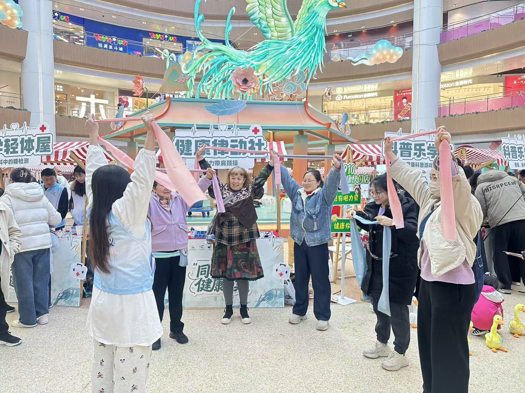 市民在享受免费诊疗咨询、健康检测的同时,在各大区域可以沉浸式体验身体解压、心理疗愈、中医养生等多元健康服务,参与急救实训、科普游戏、健康操教学等,通过趣味互动、手把手教学,以打卡集章的方式让市民在逛市集的过程中学习健康知识、解锁健康技能,让健康理念融入日常。