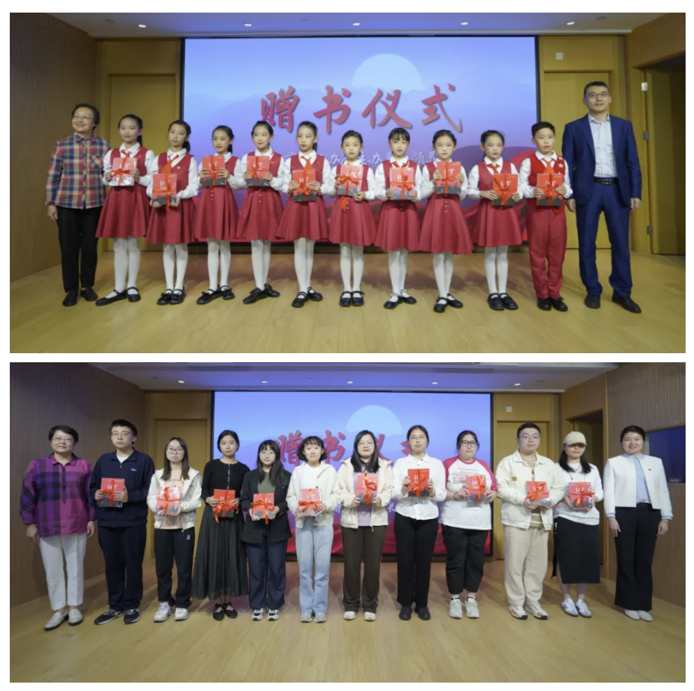 教育系统“五老”讲师团成员、武宁路小学原党支部书记陈琦作为“五老”代表为大家深情讲述了《发扬老教师优势,讲好长征故事,助力师生成长》的故事。而青年代表潘龙凤则以自己的志愿者经历,分享了《长征永远在路上》的感言,她的话语中充满了青春的活力和对未来的希望。在赠送红色书籍的环节,青年和学生代表们脸上洋溢着兴奋和期待,他们接过书籍,仿佛接过了历史的接力棒。
