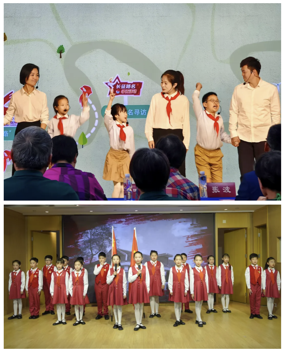 随后,学生们的表演更是将活动推向了高潮。普陀区长征中心小学的师生们通过情景剧《走在新时代长征路上》,生动地再现了长征精神在当代的传承。华东师范大学第四附属中学小学部的学生们则以原创诗朗诵《花季的长征》,展现了新时代少年的风采和决心。