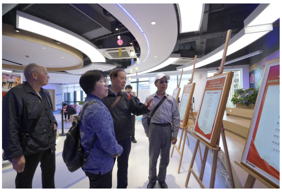 会前,老同志和青少年还兴致勃勃观看了会场外通过电子智融屏展示的普陀区老干部晚晴诗社功能型党支部专题诗词汇编。