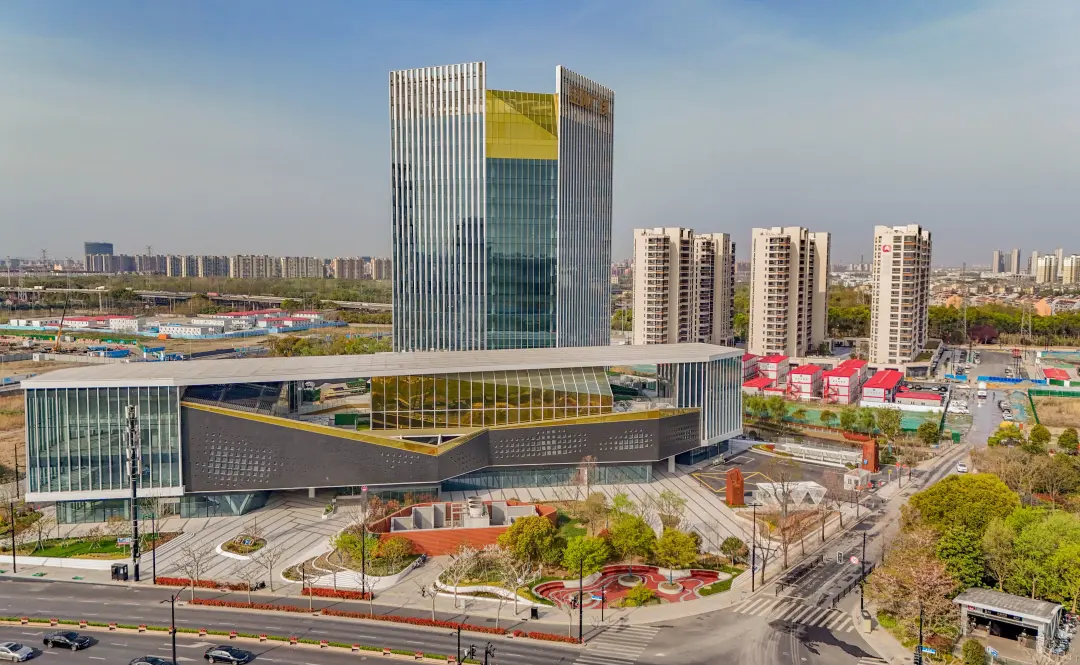 金环广场由桃浦镇属新金环集团开发运营,作为集体企业就地转型的标志性项目,于2025年4月竣工,并入选上海市建筑行业工程质量的最高荣誉奖——白玉兰奖。广场坐落于桃浦智创城核心区,总建筑面积约7万平方米,由16层的写字楼主楼和3层的商业裙房组成,是一个集总部办公、展示展览、公共服务、商业配套、交通配套为一体的综合性产业载体。