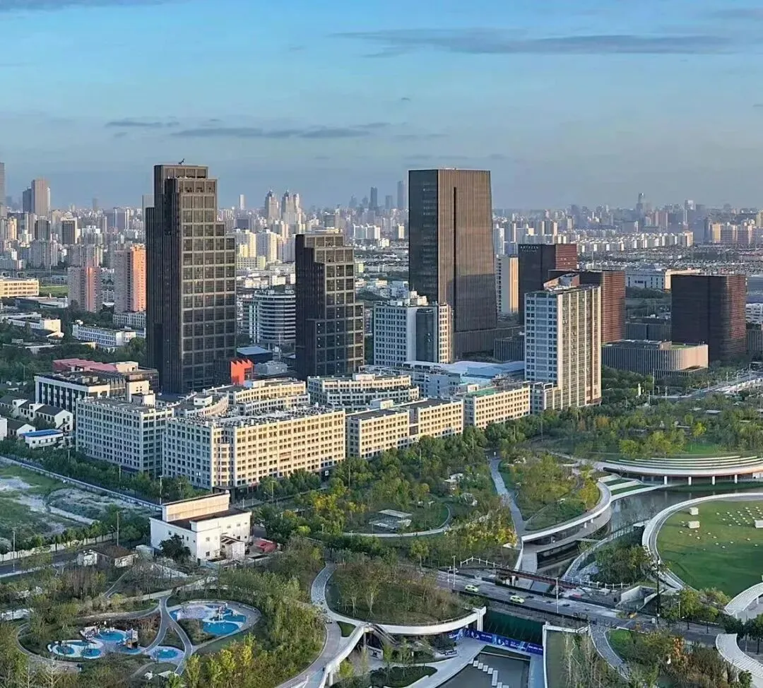 智创TOP产城综合体地处桃浦智创城核心门户,是普陀区与临港集团“区企合作”经典项目。项目总建筑面积约113万平方米,对标浦江两岸开发标准,高起点规划、高品质建设,形成包含智慧办公、商业休闲、人才公寓等多功能的建筑集群,已获绿色建筑三星级认证与LEED铂金级认证。