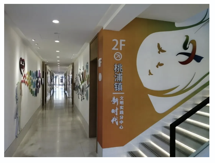 桃浦镇新时代文明实践分中心位于红棉路188号,与镇党群服务中心、社区文化中心“三中心”实现阵地共建、空间融合,致力于打造一个开放性、集约性、共享性、枢纽型的功能阵地。