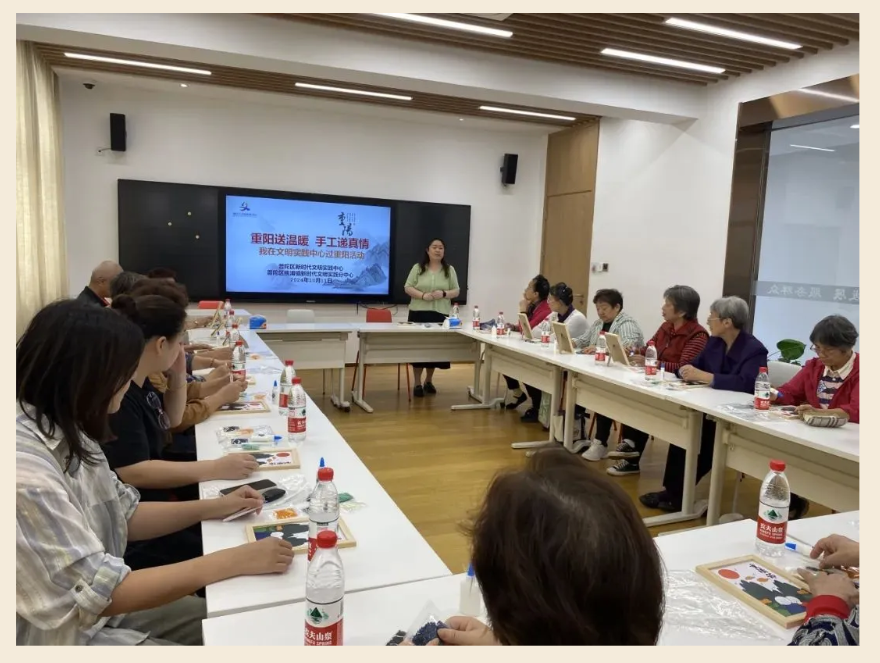 10月11日,桃浦镇新时代文明实践分中心组织开展“重阳送温暖,手工递真情”主题重阳节活动。