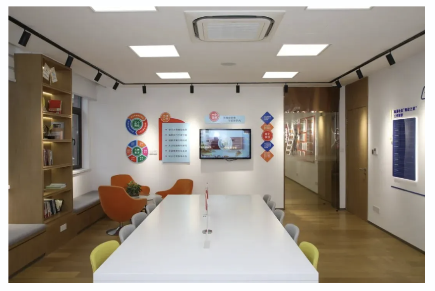 这里不仅是每周工作例会、每季度小组会议的举办地,也是项目孵化研讨和群众活动的乐园。室内书架上摆满了便民阅读的书籍杂志,展示柜中则陈列着活动中制作的手工艺品,洋溢着浓厚的文化氛围。