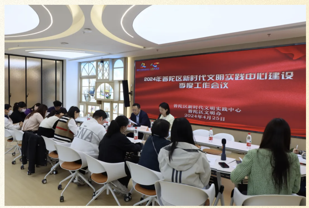 会议伊始,普陀区新时代文明实践中心总结了2024年第一季度工作,并从“文明实践活动”“平台信息工作”“三级阵地点位”三个方面部署了下一季度工作。随后,通报分析了创建全国文明城区新时代文明实践三级阵地点位暗访测评情况。