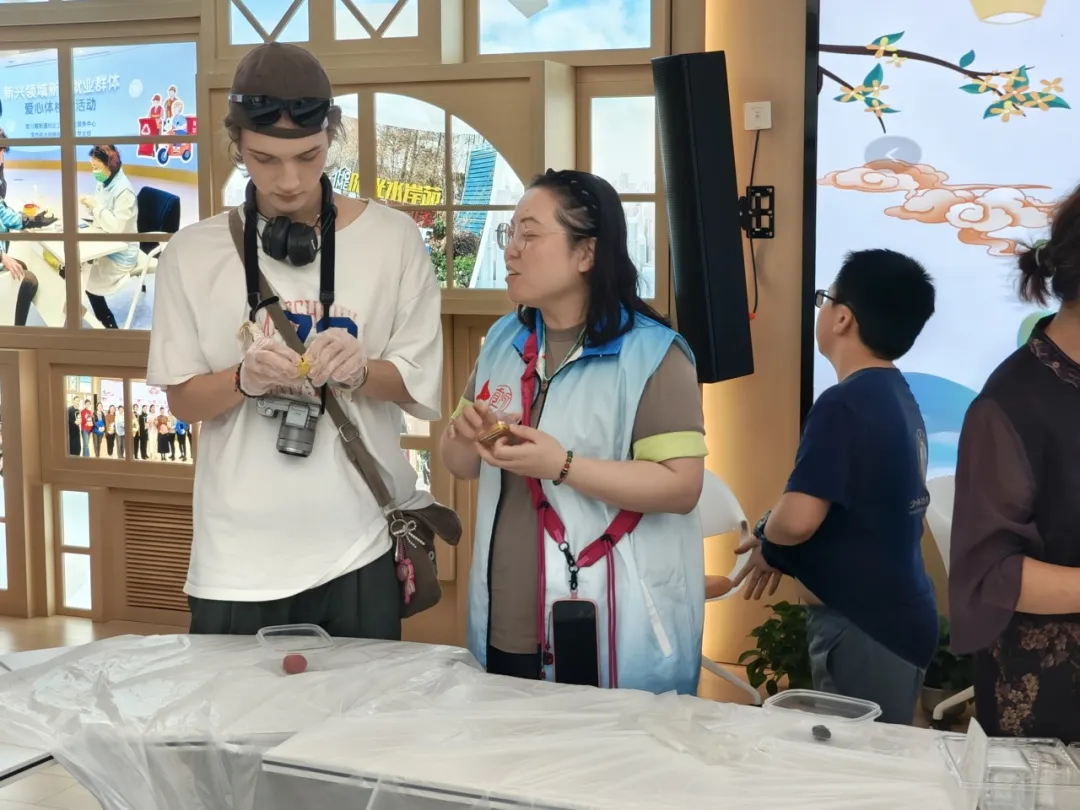 虽然制作过程中出现了冰皮粘手、花纹不清晰、内馅比例不好掌握等问题,但在老师耐心指导和邻里互相帮助下,一个个精致可爱的月饼逐渐成型。现场香气四溢,笑脸盈盈,弥漫着温馨甜蜜的节日氛围。