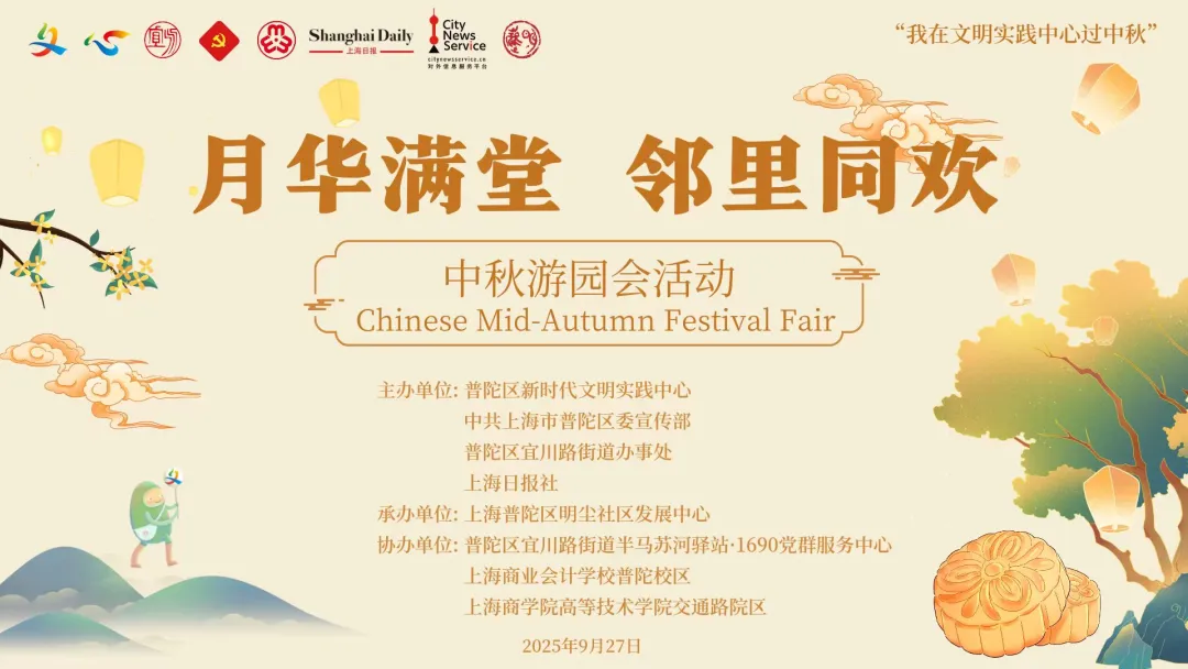作为中华民族的重要传统节日,中秋节承载着深厚的文化内涵,既是传承文化的纽带,也是寄托情感的载体。9月27日下午,由普陀区新时代文明实践中心、普陀区宜川路街道办事处、上海日报社联合上海商学院高等技术学院交通路院区、上海商业会计学校普陀校区、上海明尘社区发展中心共同举办的“月华满堂,邻里同欢”中秋游园会暨“我在文明实践中心过中秋”主题活动,在半马苏河驿站·1690党群服务中心欢乐开启。