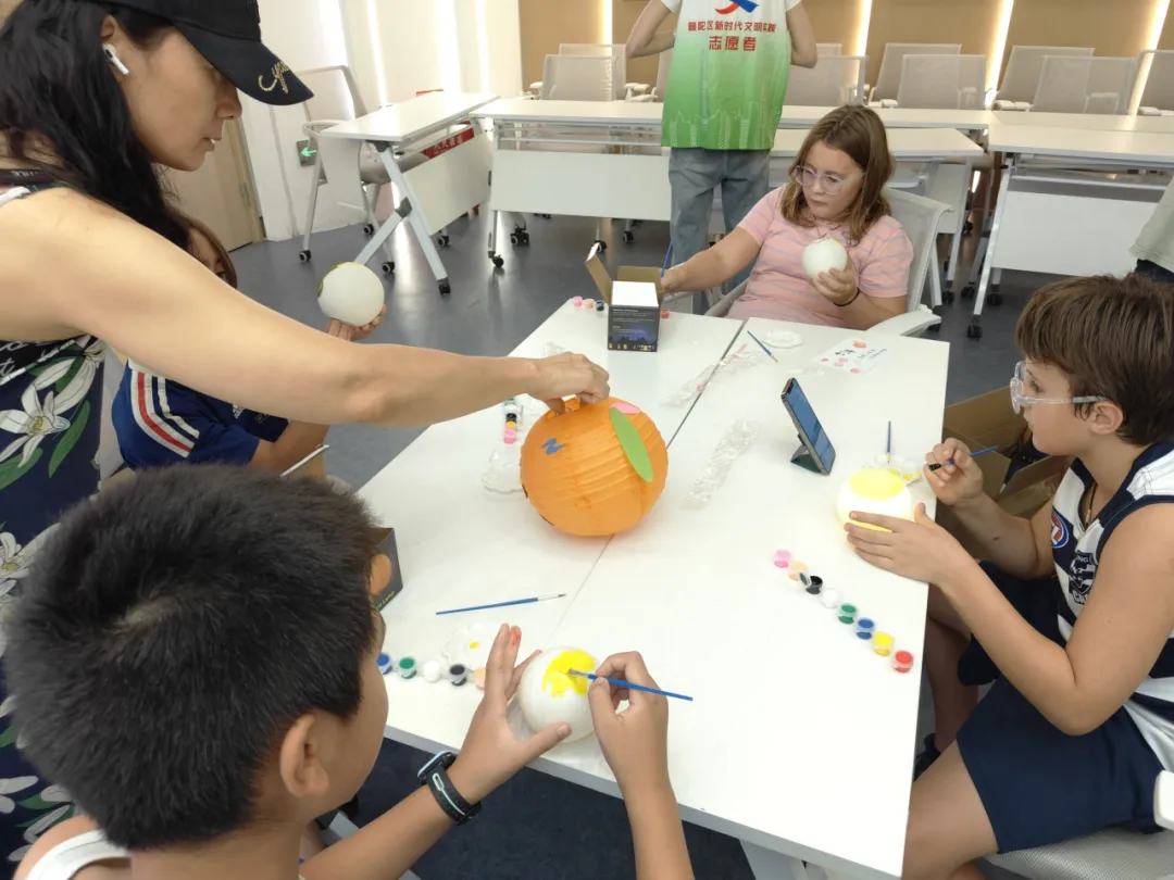 亲子家庭你追我赶,孩子们的小手快速从“土壤”中夹出“胡萝卜”;全家齐上阵,全神贯注制作兔儿爷剪纸和月球灯笼。背诵诗句环节不仅让孩子们积极思考,也让外籍友人跃跃欲试。在青年学生志愿者的帮助下,他们努力理解诗句中蕴含的中华传统文化,用中英文结合的方式朗诵诗词,现场欢声笑语不断,中华诗词的魅力感染着每一个人。