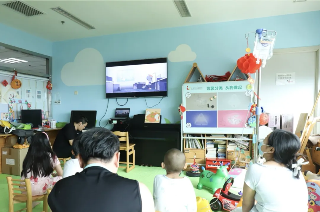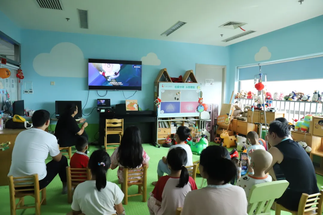 当熟悉的动画形象跃上电视屏幕时,原本寂静的走廊瞬间沸腾。病患儿小芝裹着毛毯靠在枕头上,眼睛却亮得像星星:“以前输液时只能看天花板,现在能和整个病区的伙伴一起看电影,连消毒水的味道都好像变成了爆米花香!”暮色渐深,病房里的笑声与动画配乐交织,银幕上流转的光影与孩子们眼中的星光相映,这场“微而暖”的文化盛宴,以润物无声的方式抚慰了童心,也彰显了普陀区文明实践服务的温度与精度。