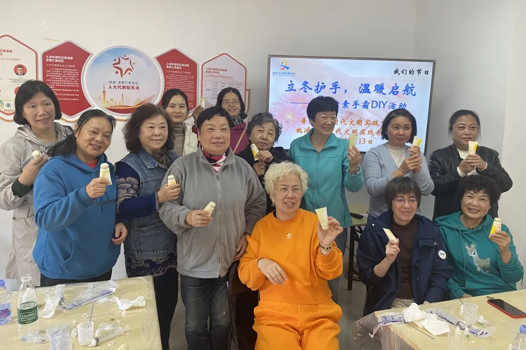 桃浦镇新时代文明实践分中心举办“立冬护手,温暖启航”精油酵素手霜DIY活动。现场,在老师指导下,居民们精心挑选植物精油与新鲜酵素,认真调配、搅拌,从原料融合到香气定型,每一步都满含期待。当凝聚着心意的护手霜在手中成型,居民们成就感与喜悦溢于言表。此次活动在互动中增进邻里情谊,让居民携手共赴冬日,感受社区生活的温馨美好。