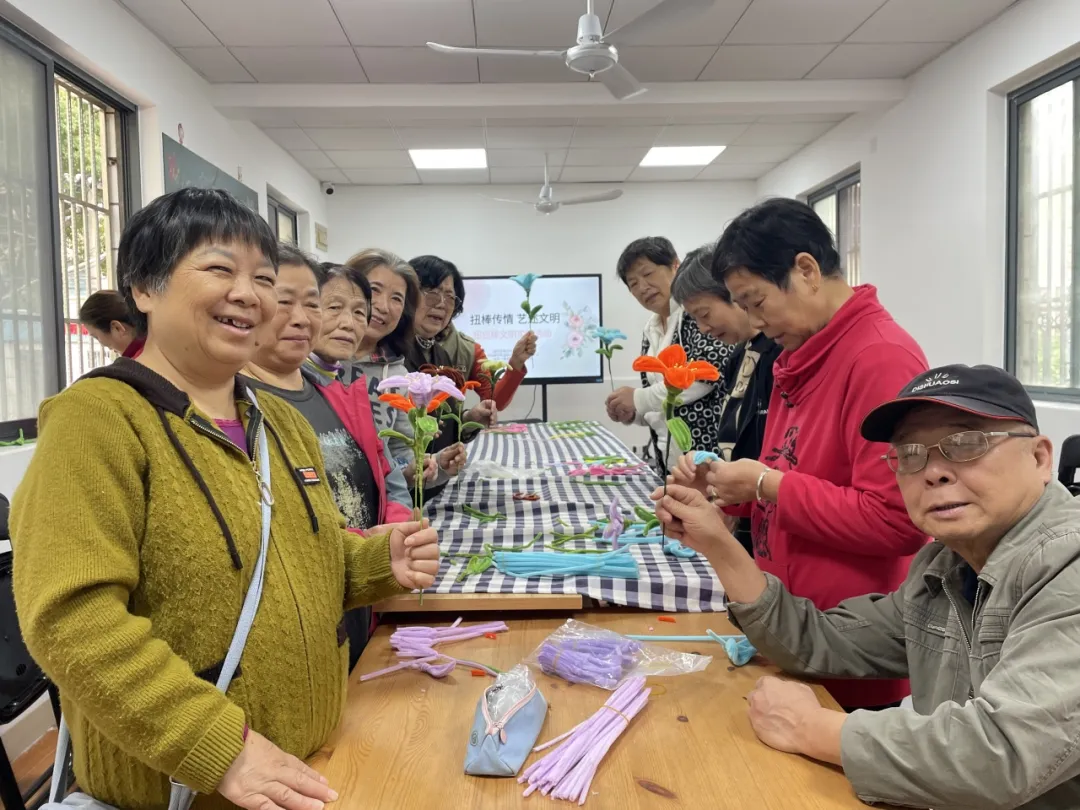 长风新村街道新时代文明实践分中心联合长风四村第一居民区实践站开展“创意手工+邻里温情”扭扭棒捧花DIY活动。现场,专业老师示范弯折、缠绕扭扭棒成花瓣,居民们迅速上手,有的专注扭转,有的大胆搭配色彩,邻里间相互交流想法。活动让居民们畅享手工乐趣,为社区添上一抹温馨色彩。