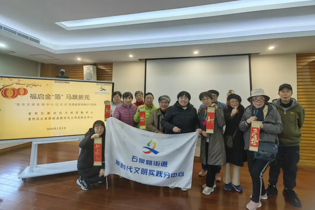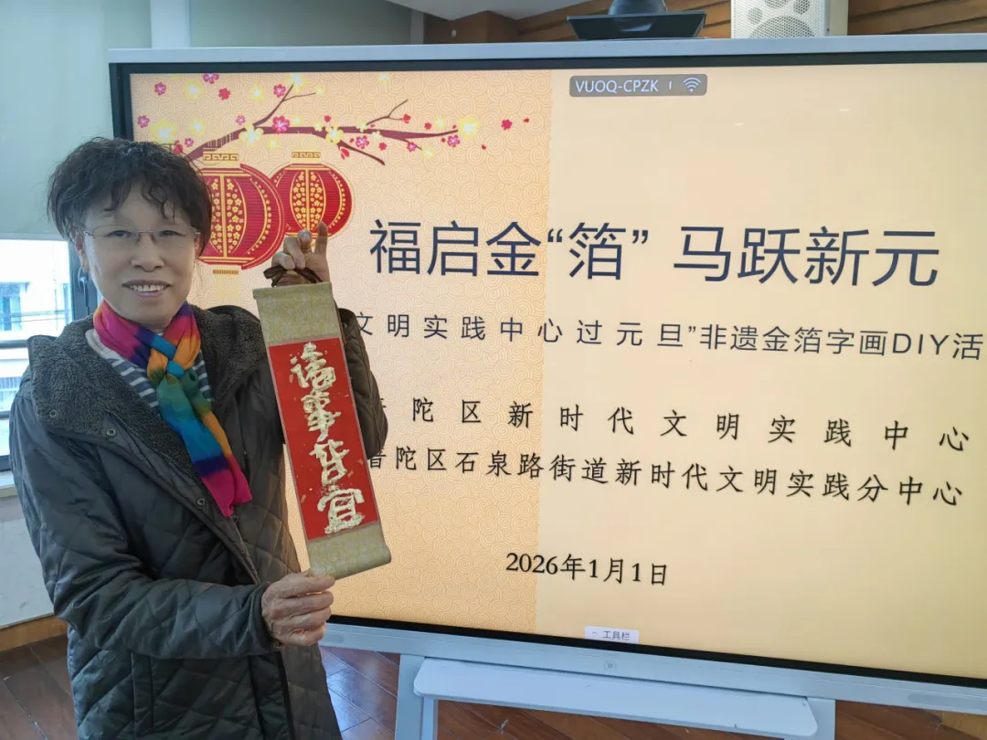 新年的气息悄然弥漫,石泉路街道新时代文明实践分中心内暖意融融。“‘福启金箔·马跃新元‘——我在新时代文明实践中心过元旦”非遗金箔字DIY活动中,金箔微光闪烁,居民笑语轻扬。大家正以最质朴而深情的方式,在新的一年,将传统年俗化作指尖上的文化传承。