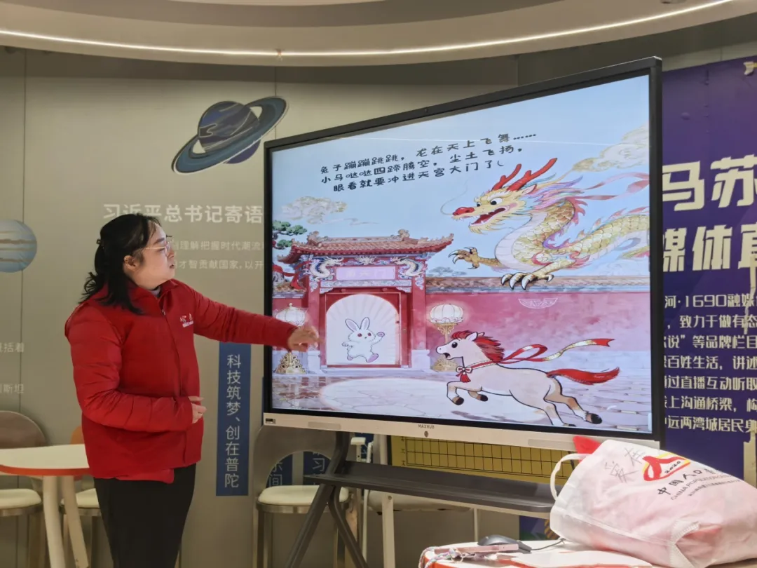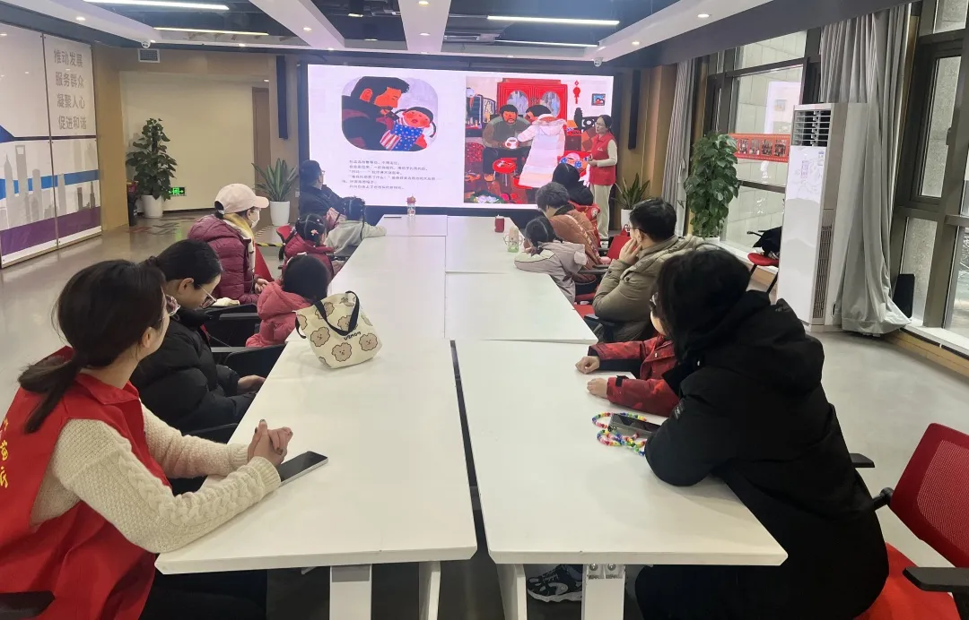 另一边,“读《团圆》故事 品读民俗年味”主题环节在香溢党群服务中心新时代文明实践站开展,亲子家庭围坐共读绘本《团圆》。