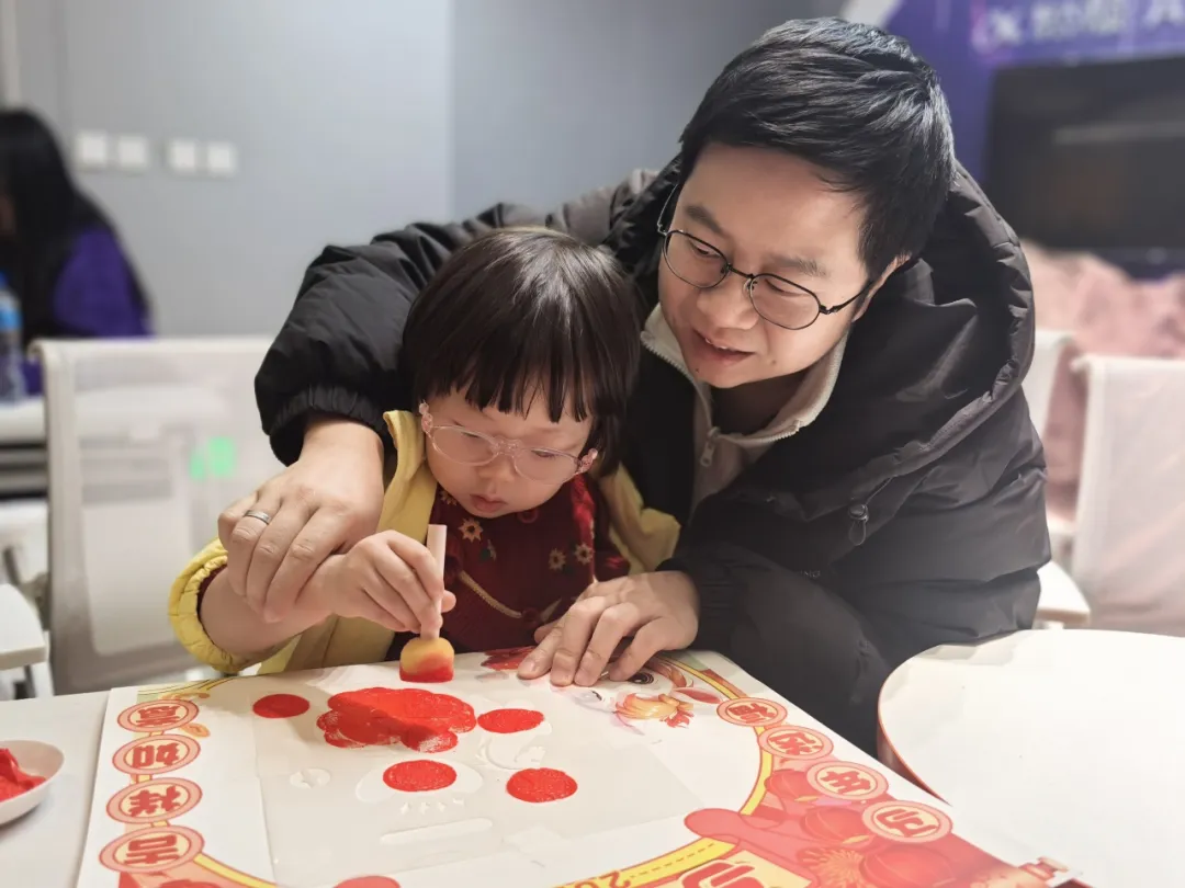 手工工坊环节同样精彩纷呈,亲子家庭携手参与新年“伴手礼”DIY——日历拓福活动。拓福,将传统拓印技艺的趣味性与新年祈福的美好寓意完美融合,孩子们与家长默契配合,将吉祥喜庆的新年祝福纹样,一笔一画拓印在日历页面之上,让每一页日历都承载着美好期许,每一次翻页都充满仪式感,把马年好运与新春祝福,悄悄印刻在时光的记忆里。