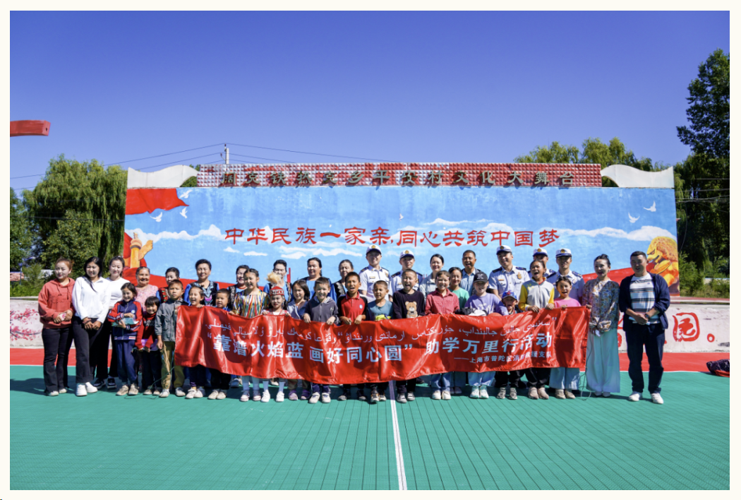 真光消防救援站在前往新疆伊犁开展“助学万里行活动”期间,先后与齐巴尔塔勒村、琼库什台村建立“点对点”结对共建关系,与新疆维吾尔自治区“访民情、惠民生、聚民心”工作队成立党建联盟,达成后期助学帮困共识。