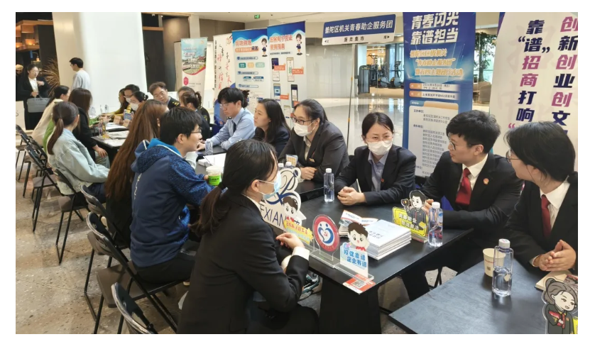 4月26日,区级机关联合区投促办、区税务局、区发改委、区人社局、区市场局、区法院、区医保局、真如副中心等单位青年,共同参与“青春闪光 靠谱担当——普陀区区级机关‘青春助企服务团’暨五四主题团日活动”,坚持党建带团建,组织机关团员青年走进重点楼宇,在真如中海环宇城举办“青春助企服务团”暨五四主题团日活动。活动现场,机关青年们从普法宣传、政策咨询、招商引资等方面,为企业和青年提供税收政策、信用宣传、企业合规经营、劳动争议纠纷咨询等各类惠企便民服务。