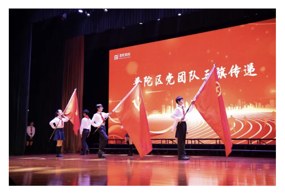 以迎接上海市第九次少代会召开为契机,开展“当好预备队 喜迎少代会”普陀区党团队三旗传递活动,强化少先队员对党、团、队组织的认同与热爱,着力培养担当民族复兴大任的时代新人。共青团员和少先队员代表等近400人参加活动。