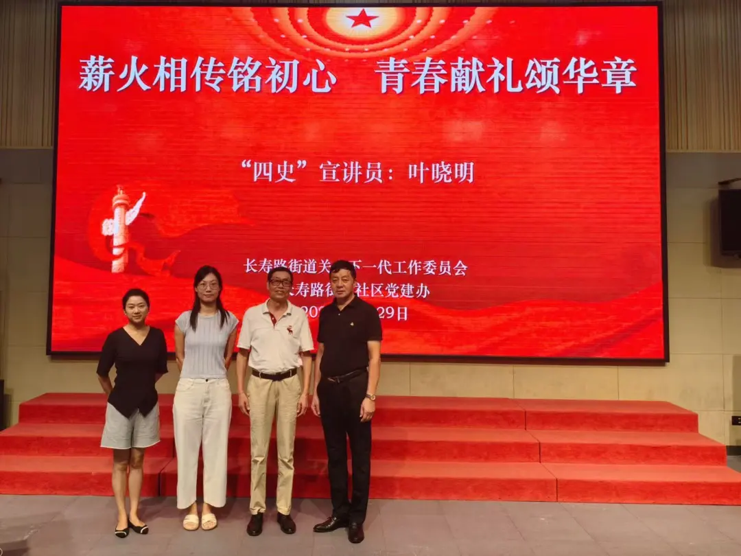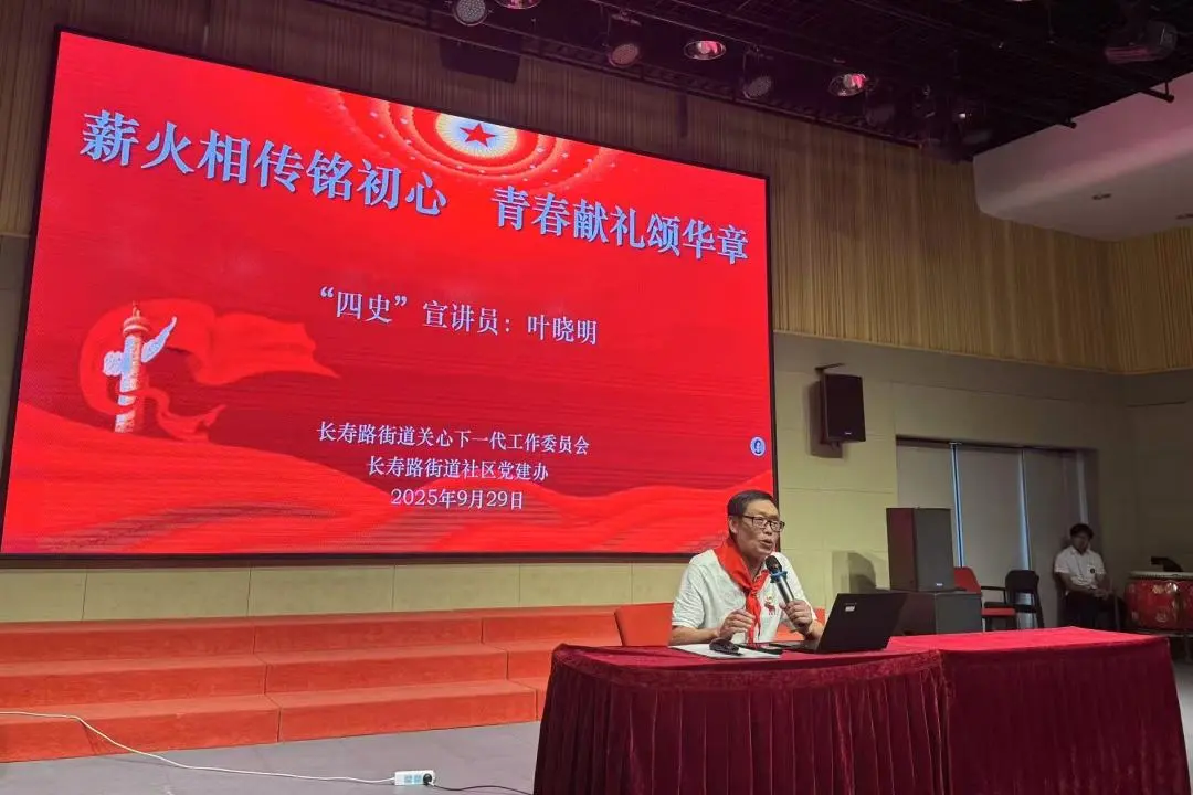 本次升旗仪式特邀长寿路街道关工委成员、“四史”宣讲员叶晓明老师,深情讲述其父亲叶人龙同志的革命岁月。叶人龙同志曾投身“五卅”运动和上海工人武装起义,组织“业余同乐社”点燃抗日救亡热情;抗战胜利后,他投身隐蔽战线工作,筹建捍卫秘密电台“昆仑”,在刀尖上守护革命火种,为革命事业作出了卓越贡献。