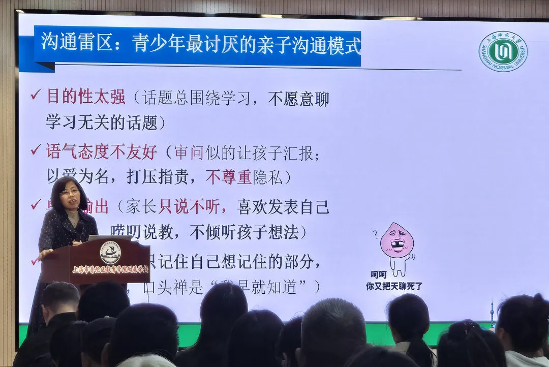 为深化未成年人心理健康教育,助力家长更好地应对青春期亲子沟通挑战,11月11日,由普陀区新时代文明实践中心、普陀区文明办、上海师范大学心理学院主办,区教育学院附属学校承办的“阳光成长”心网相护——未成年人心理健康辅导沙龙第十三场活动举行。上海师范大学心理学院教授、博士生导师崔丽莹以《青春期亲子沟通:问题与对策》为题,与近三十组亲子家庭展开深入交流,共同学习如何与青春期的孩子更好地相处。