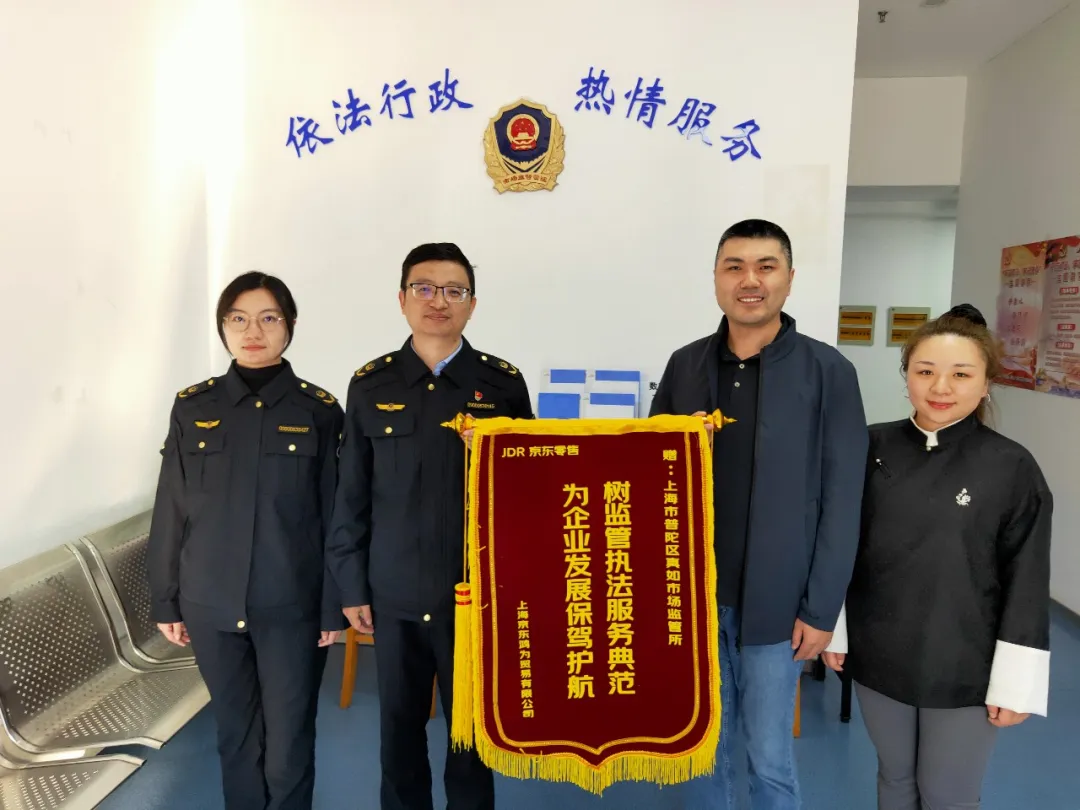 企业对区市场监管局多年来的指导和支持表示感谢,并向属地监管部门真如市场监管所送上锦旗。