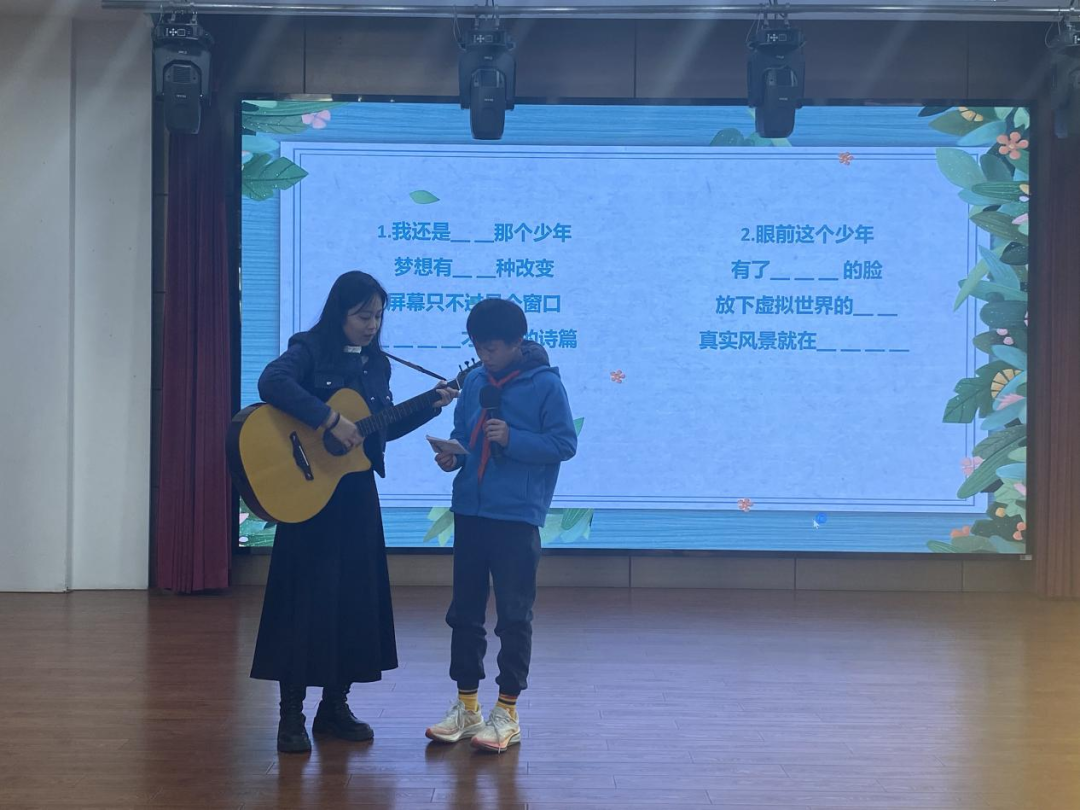 在歌曲创作环节,学生们围绕“健康上网”主题改编《少年》,把对健康生活的憧憬、对现实兴趣的热爱融入歌词。这不仅强化了他们对健康上网的积极认知,更让他们在创作中思考网络与现实的关系,明白网络应是生活的辅助工具,而非主导,从而树立正确使用网络的观念。