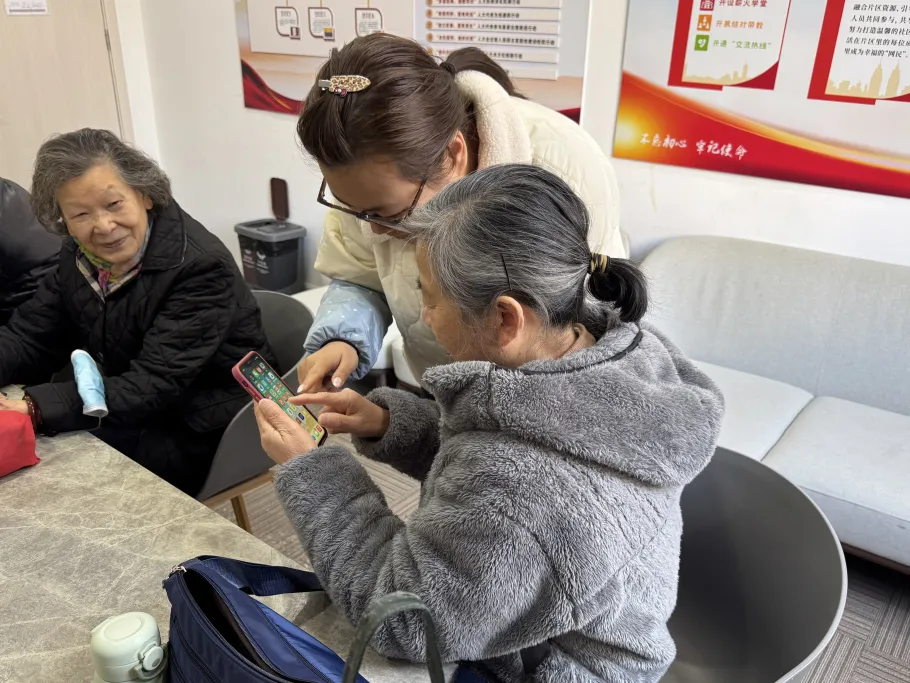 要稳稳地“托住”晚年幸福感,轻松舒适的适老化氛围必不可少。志愿者们始终保持耐心、温和、尊重的态度,不催促、不敷衍,用陪伴消除老人的紧张与不安。不少老人感慨:“在家门口有人教、有人帮,心里特别踏实。”