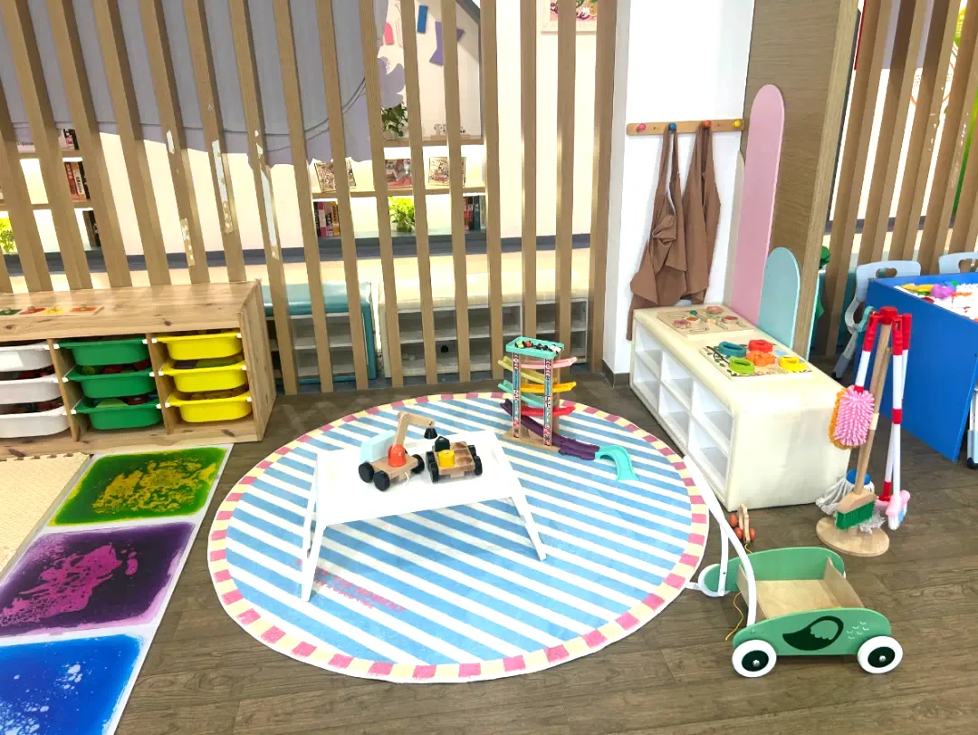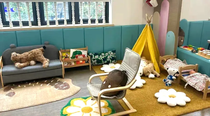 为营造安全、趣味的成长空间,甘泉路街道社区“宝宝屋”铺设防摔软垫、设置安全护栏,在室内划分“运动区”“探索区”“美工区”“阅读区”“感官体验区”“角色扮演区”,采用环保材质玩具和家具,在细节处彰显对儿童的呵护。