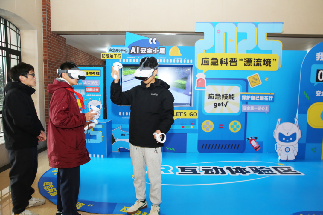 在室内应急科普 “漂流境” VR体验中,学生们仿佛置身于危险场景,如熊熊燃烧的教学楼、突发地震的房间,通过亲身体验掌握正确的避险方法。教室隐患排查体验则激发了学生们的观察力和思考力,他们化身 “安全小侦探”,查找潜在安全隐患。这些新奇有趣的体验,让开学第一课变得生动活泼,成为学生们难忘的安全教育记忆。