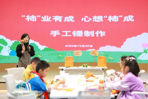 手工环节,孩子们亲手制作“‘柿’业有成”养生锤。一缠一绕,一敲一打,在趣味创作中不仅放松了身心,更寄托了对未来事业有成的美好期许。