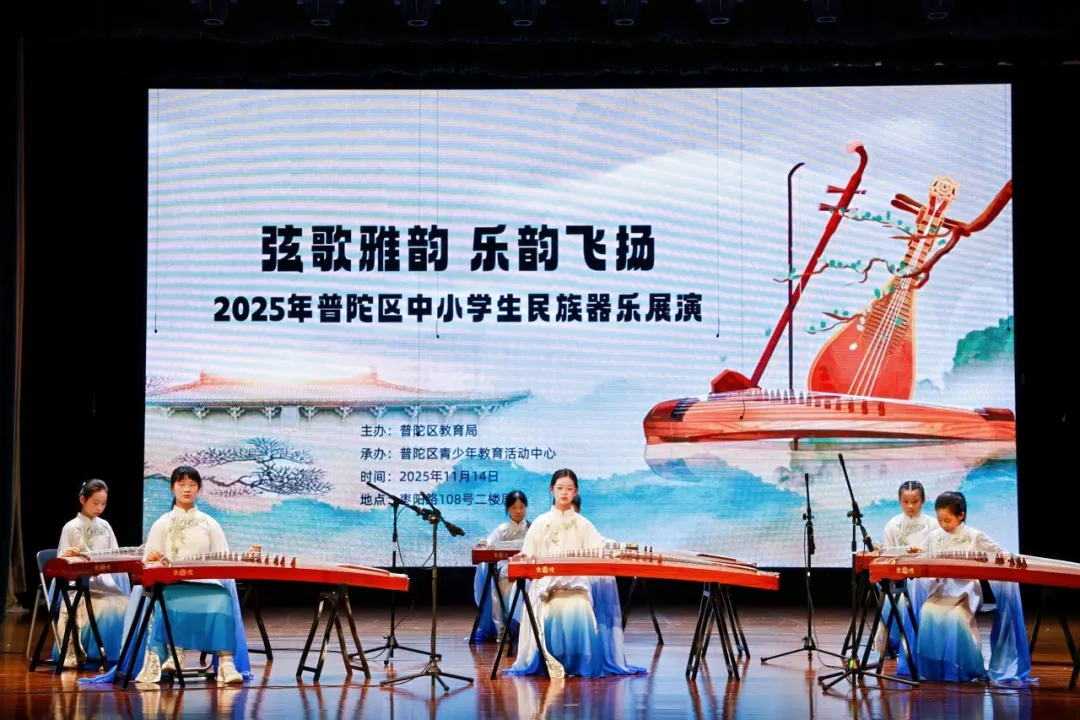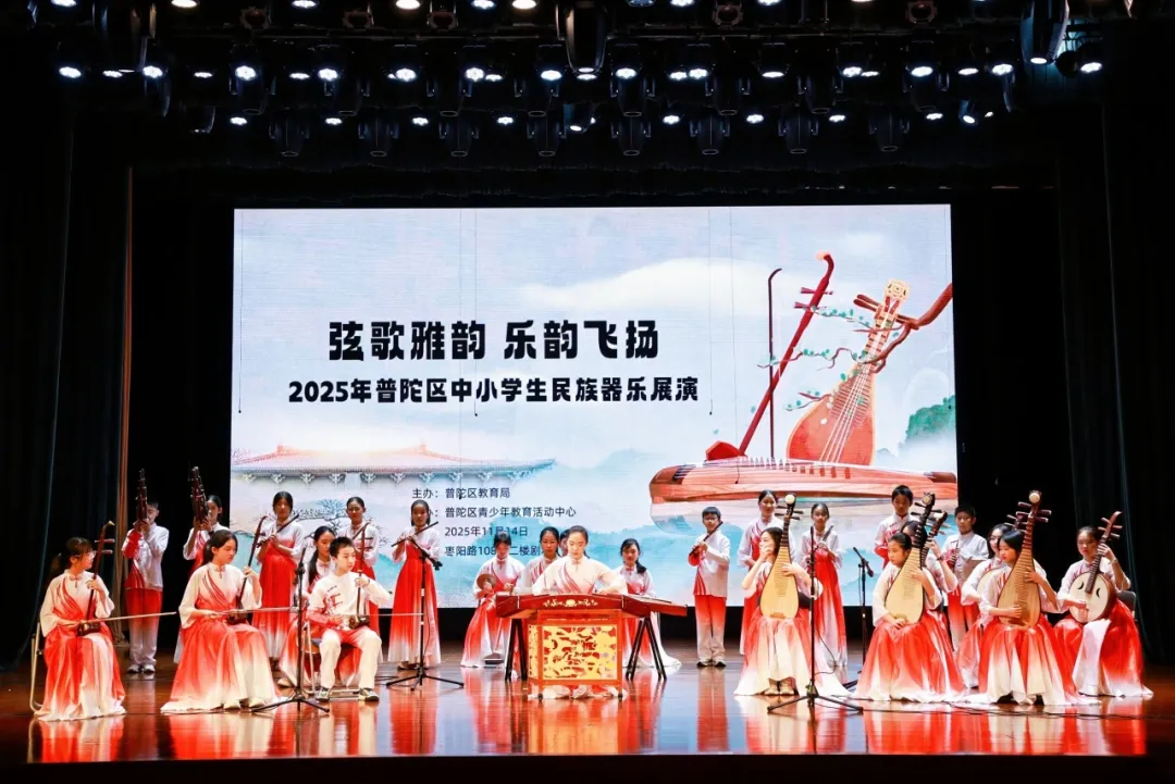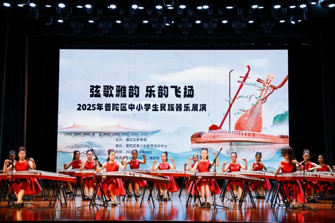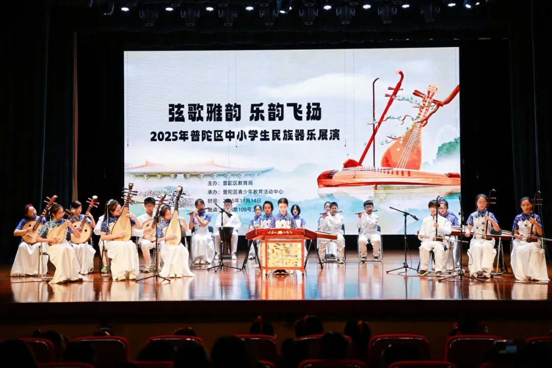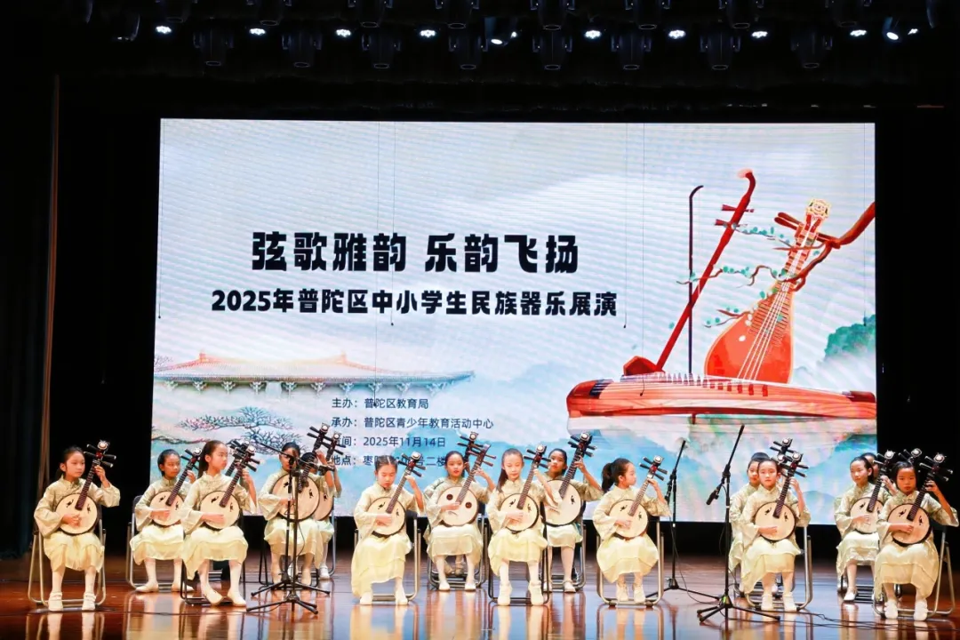 11月14日,由普陀区教育局主办、普陀区青少年教育活动中心承办的“弦歌雅韵乐韵飞扬”2025年普陀区中小学生民族器乐展演,在普陀区青少年教育活动中心二楼剧场圆满落幕。来自全区16所民乐特色校及民乐联盟校的360名“小小国乐手”同台竞技,以精湛技艺传承千年古韵,用少年意气奏响时代新声。