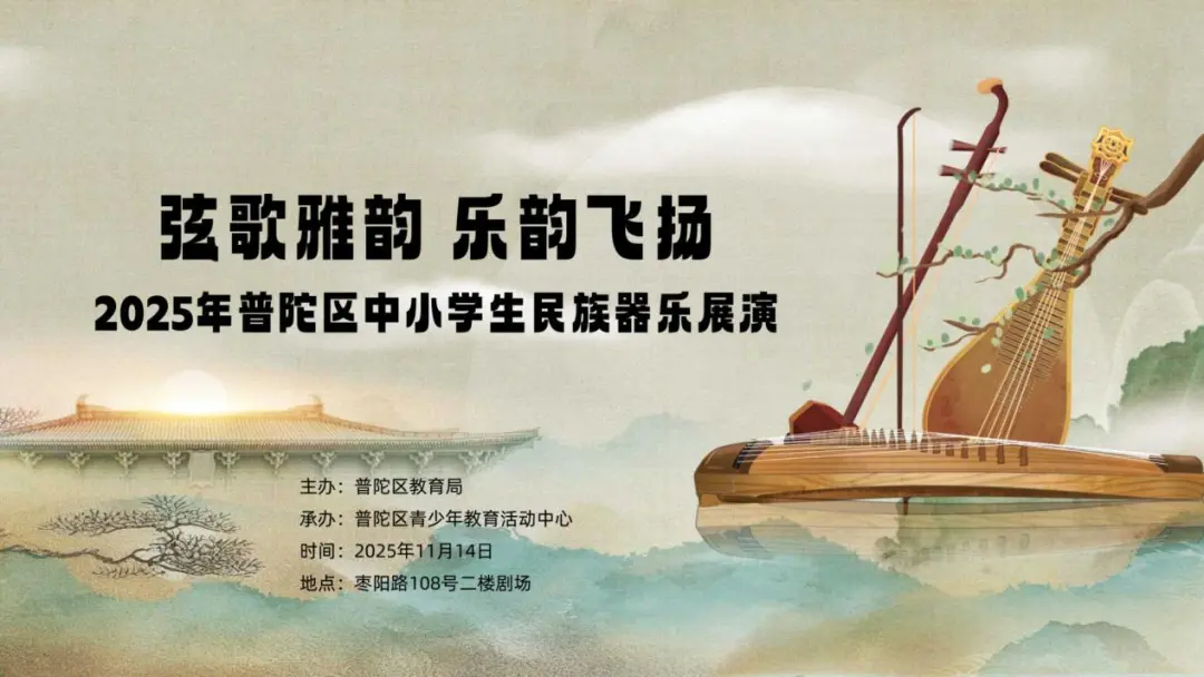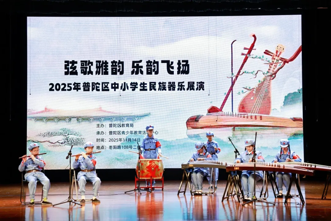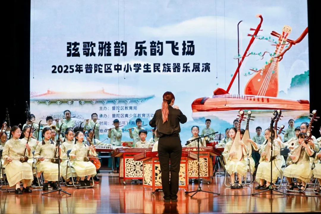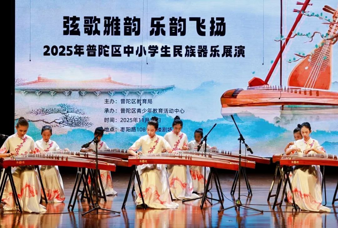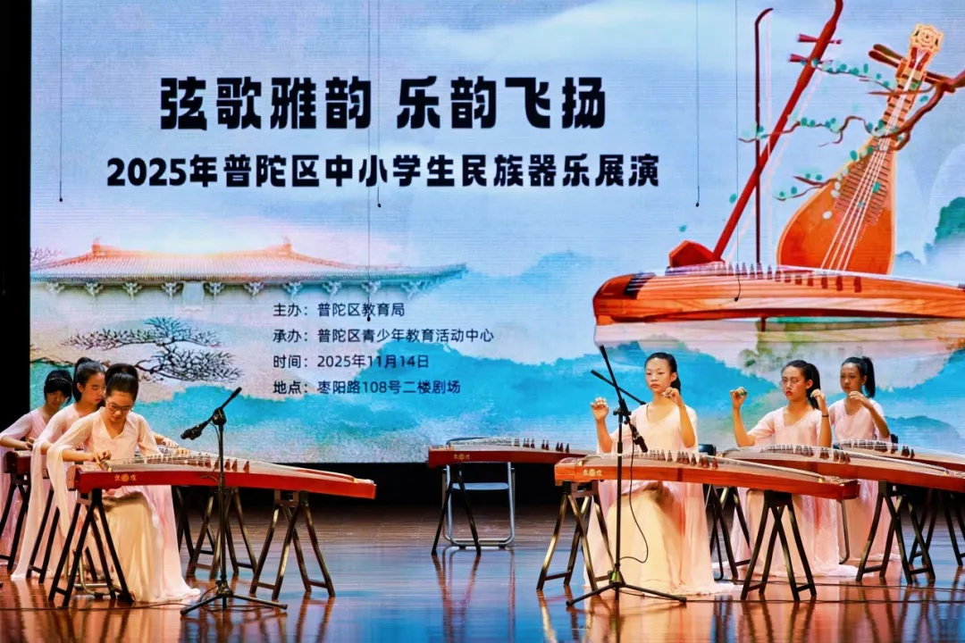 11月14日,由普陀区教育局主办、普陀区青少年教育活动中心承办的“弦歌雅韵乐韵飞扬”2025年普陀区中小学生民族器乐展演,在普陀区青少年教育活动中心二楼剧场圆满落幕。来自全区16所民乐特色校及民乐联盟校的360名“小小国乐手”同台竞技,以精湛技艺传承千年古韵,用少年意气奏响时代新声。