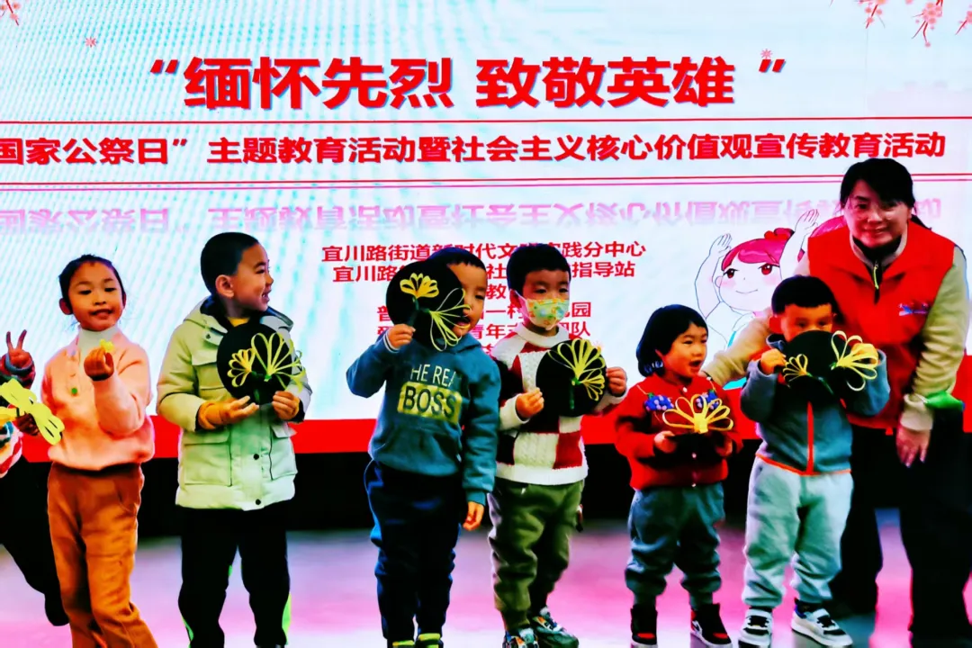 日前,宜川路街道服务办、宜川路街道新时代文明实践分中心、宜川路街道学生社区实践指导站、宜川路街道妇联联合长宜学前教育集团、“爱在身边”青年志愿团队、心连心公益发展中心共同在香溢片区开展“国家公祭日”主题教育活动暨社会主义核心价值观宣传教育活动,与孩子们一起铭记历史、缅怀先烈、致敬英雄。