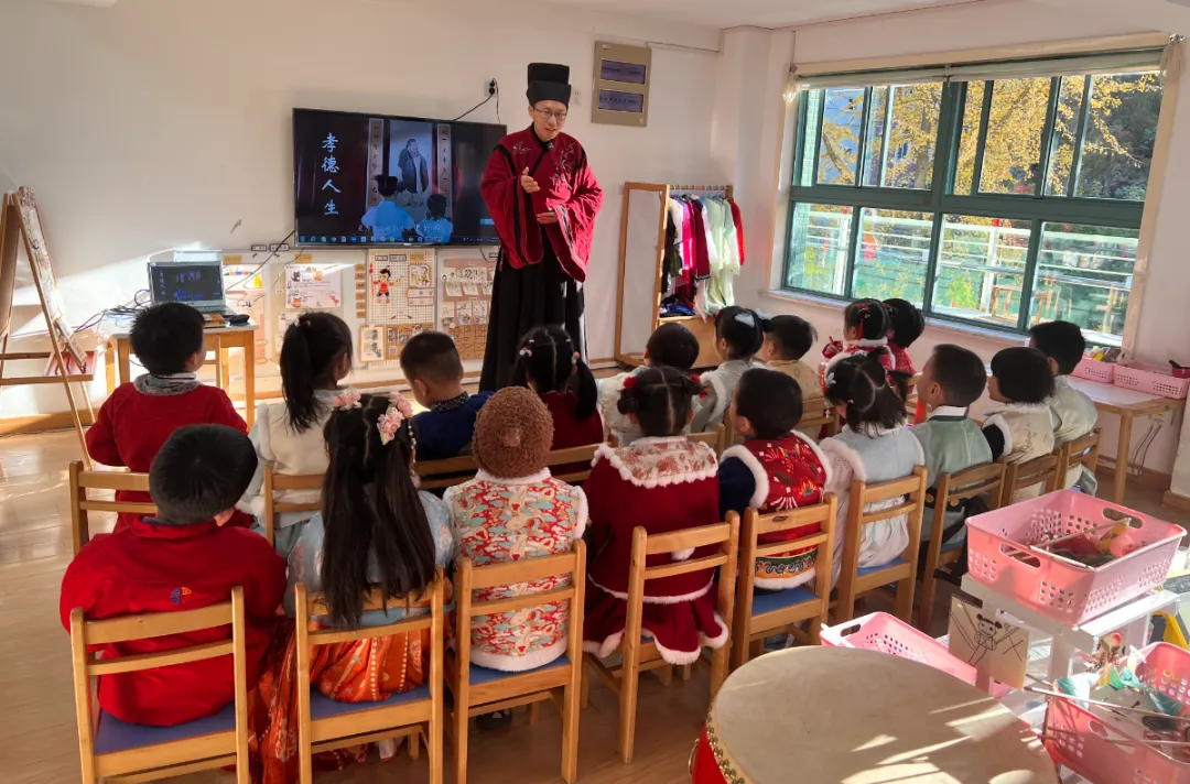 “我们今天为孩子们带来童蒙养正的经典课程,希望通过简单的礼仪动作,帮助他们建立对礼数的初步认知。”孔令韬介绍道。在经典诵读环节,孩子们挺直背脊,跟随老师一字一句诵读《弟子规》章节,结合幼儿认知特点,专家以充满童趣的语言和情景模拟,将“父母呼,应勿缓”“长者先,幼者后”等经典句义娓娓道来,让孩子们在互动中理解其中蕴含的道理。